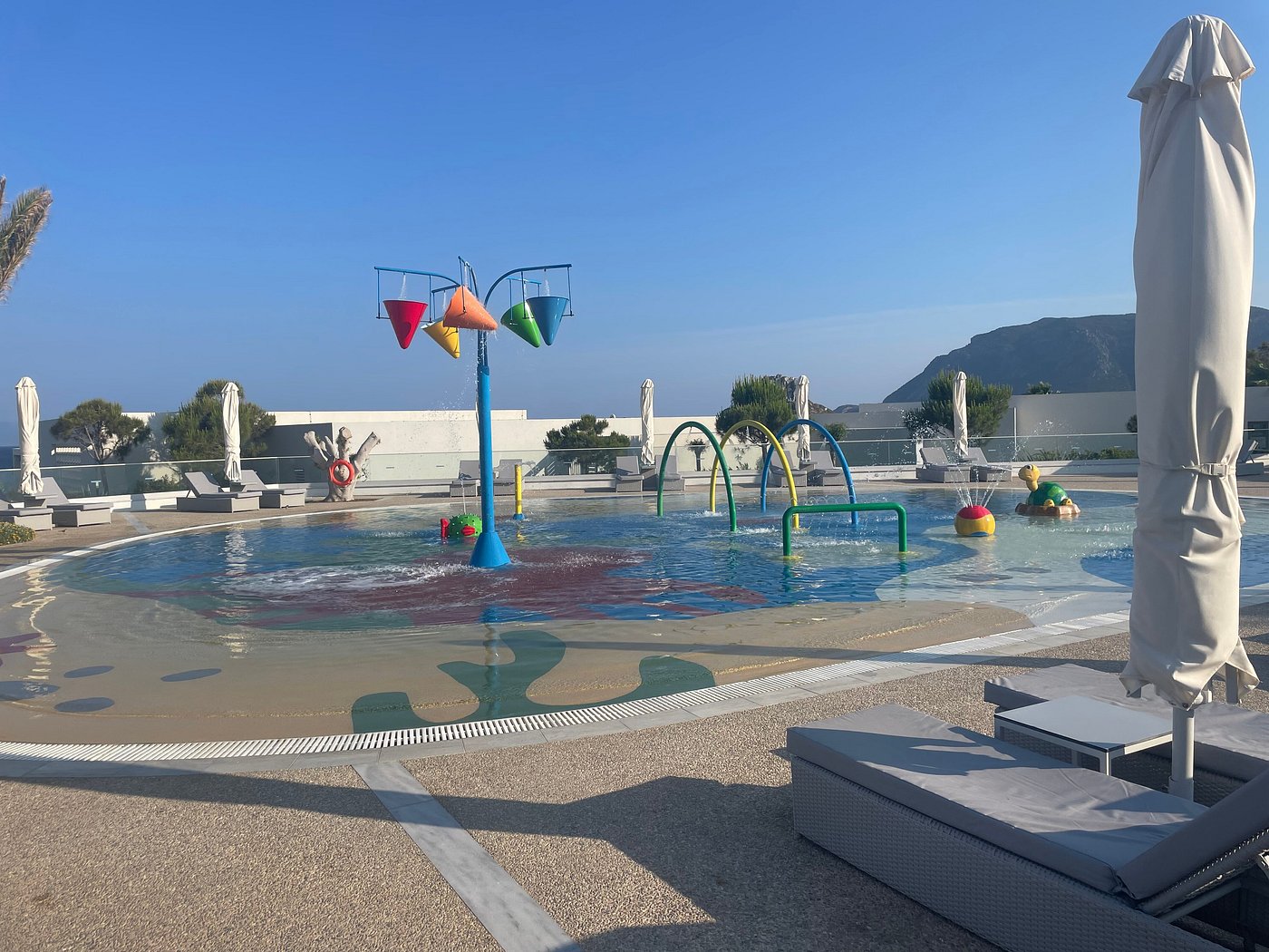 For families, Ikos Aria is engineered to reduce the cognitive load that typically makes resort travel feel like work in disguise. Children from four months to 17 years are divided into age-appropriate groups - Heroes Crèche, Heroes Kids Club, and Just4Teens - all run to OFSTED standards by the resort's in-house team. Complementary 30-minute beach childcare is included in the all-inclusive rate for children four and up, and the Heroes Supper Club handles the dinner hour for parents who want a proper evening to themselves. The Football Academy, split into morning sessions for younger children and early-evening sessions for older ones, keeps sporty kids genuinely occupied rather than hovering at the pool edge. Eight separate pools (including a dedicated kids' splash zone and an exclusive Deluxe pool with its own children's area) mean the resort handles crowd management well enough that parents and children can be near each other while genuinely doing different things.