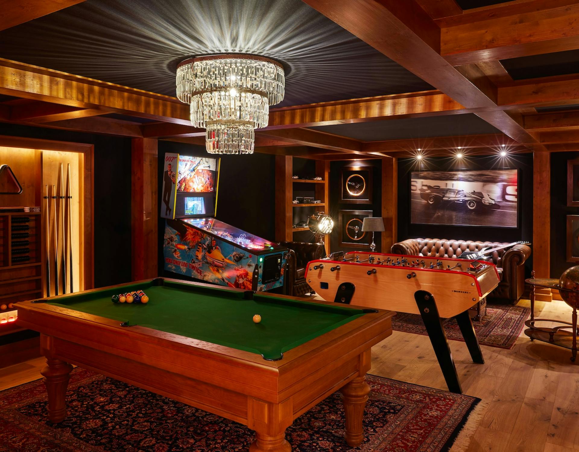 Facilities include: two cinema rooms, TV lounge, multiple games rooms (air hockey, table football, pool, pinball, arcade and video games), outdoor heated treehouse, and private ice rink with a path through the trees.